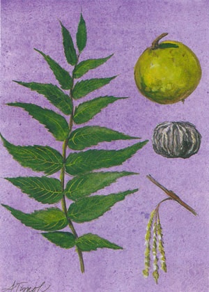 The large, deep green, lustrous leaves of black walnut give the tree a luxuriant appearance that is more suited to the tropics than to our clime, where, typically, trees are far more restrained. Indeed, the genus Juglans, which also includes our native butternut, is believed to have arisen in warmer latitudes at a time when the entire earth was warmer, about 40 or 50 million years ago. Black walnut is still happier in the central and southern parts of the U.S. than it is in the Northeast, and rich bottomland soils bring out its best.