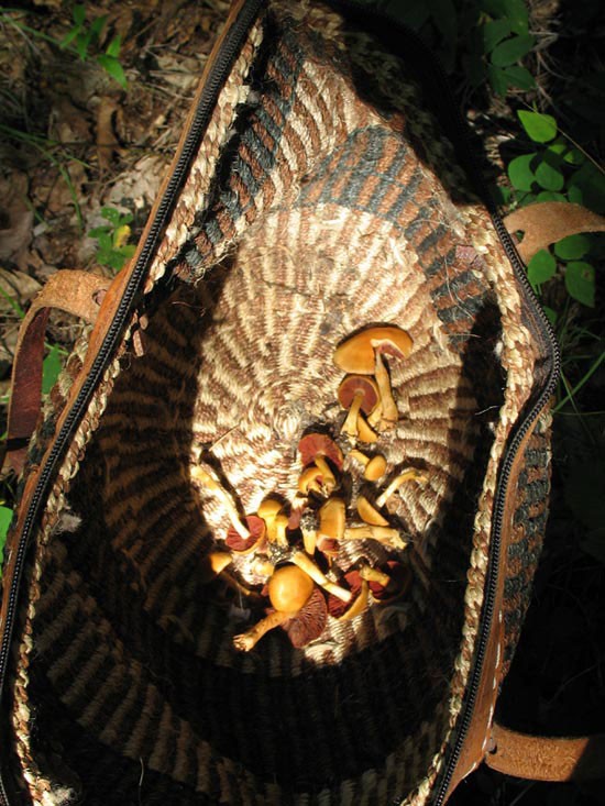 Yet places like this can be a gold mine for mushrooms, particularly those species that establish mycorrhizal relationships with plant roots. Plant roots physically interconnect with rootlike fungal structures called hyphae. The fungus secures nutrients and minerals from the soil and shares it with the plant; the plant produces sugar through photosynthesis and shares it with the fungus. Such symbiotic relationships between plants and fungi are common in nature and are especially important for many plant species that grow in acidic, sandy soil, such as blueberries and other members of the heath family. The fungus reproduces using spores, and sends up its fruiting bodies – mushrooms – when conditions are right for spores to be disseminated.