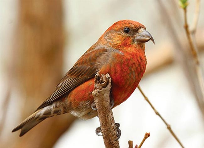 The crossbill’s determination with seeds reveals an urgency beyond routine foraging; it allows them to breed at any time of year. Among virtually all songbirds, day length – the photoperiod – triggers hormone production to bring on breeding. Longer, warmer days in spring, along with a burst of food availability (insects, fruits, and seeds) provokes birds to sing and reproduce. For crossbills, however, the proximate trigger for breeding is food availability. When the boughs hang heavy with cones, crossbills can get the calories essential for reproduction – from egg production to feeding young – even as snow coats the cones. Those high-calorie conifer seeds stoke fires in their bellies.
