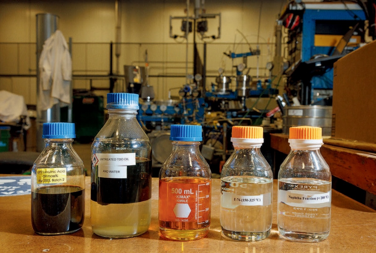“Today, we are running our organic-acids-to-fuel pilot system, which involves very high temperatures,” Luce, TRC’s facility manager, explained as she handed out helmets and eyewear to a small group of visitors this past spring. “We call that system SynCOPP for short – it stands for synthetic crude oil pilot plant.”