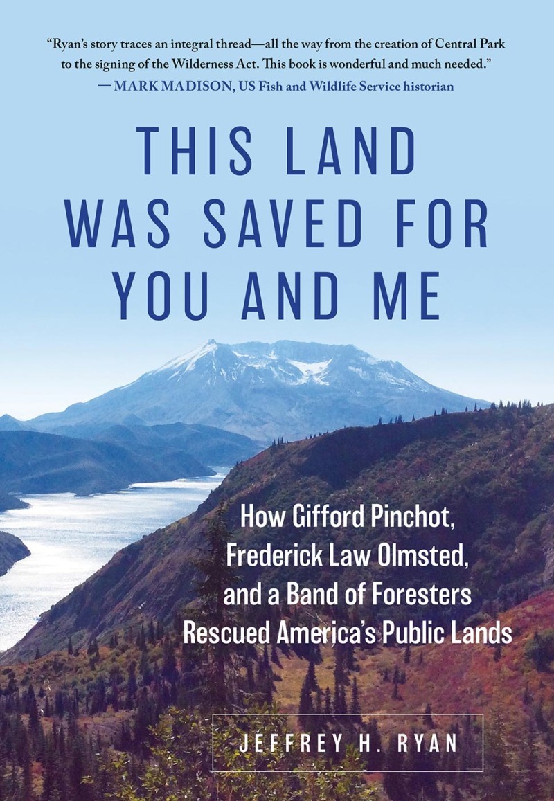 In This Land Was Saved for You and Me: How Gifford Pinchot, Frederick Law Olmsted, and a Band of Foresters Rescued America’s Public Lands, Jeffrey H. Ryan takes us back to the late 1800s, before there were national forests, national parks, or wilderness areas. When many believed that America’s forests were limitless, and cut-and-run logging was common. When the concept of managing a forest was unheard of, and anyone who wanted to be a professional forester had to go to Europe to get that training.