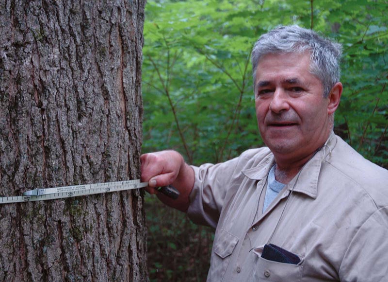 All this might make it sound as if Mike Greason was against cutting trees. In fact, he started his career as a logger before going to forestry school at the University of Massachusetts in the early 1960s. When I was editing his story on retaining big trees, he regaled me with stories of big honking red oaks and sugar maples that had been cut in his clients’ woodlots. He could recite all the details: diameters, board feet, dollars. He loved seeing big beautiful sawlogs on a log truck, but only when their time had come.