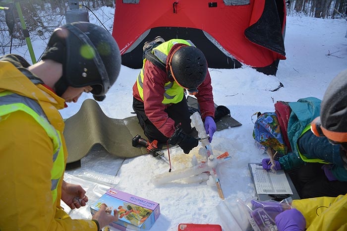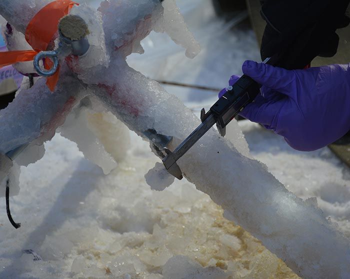 Over the course of four freezing nights in January and February, eight of the ten plots were iced, each by a team of about 20 dedicated researchers and volunteers: two plots received a quarter-inch of ice, four received a half-inch, and one unlucky plot was coated in three-quarters of an inch of ice.