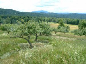 Had I looked northward while in that car, I would have seen a tangled and neglected orchard. That orchard had been planted hurriedly and haphazardly by the previous owner of our tree farm in Meriden, New Hampshire. Though the varietal names of those apple trees are lost to us, we do know that every autumn the orchard gives us a few gallons of cider, a quick bite as we mow the grass, or a giggle as we watch a turkey stretch its neck and jump high to grab its own bite of the juicy fruit.