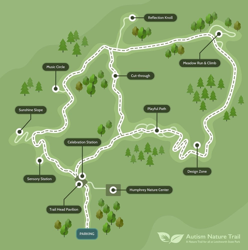“Susan and I wondered what could we do to share this calming effect of Letchworth State Park with persons with autism and those who care for them,” said Penman. “Suppose there was a nature trail, designed specifically for persons with autism spectrum disorder and other developmental differences. What would it look like? And what could we do to bring it to fruition?”