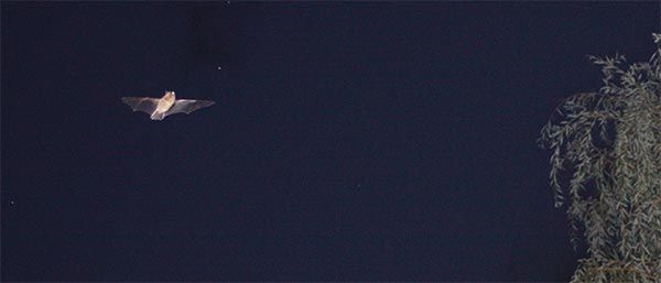 All of the releases were of big brown bats, Eptesicus fuscus, but back at the bat cave, a little brown, Myotis lucifugus, is recovering from white-nose syndrome. No obvious fungus on its nose, but another condition, immune reconstitution inflammatory syndrome (IRIS), is rapidly degrading the bat’s wings.
