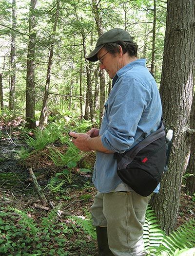“It should be right up here ahead of us,” promised Kevin Martin, his focus alternating between his handheld GPS and the knee-deep water that surrounded us. He was looking for the best (and driest) route to the biggest black gum tree in New Hampshire. The woods-and-water setting was appropriate, as Martin has been building and repairing wooden boats for three decades. His other passion is big trees. In 2013, he authored a guide book on the subject, Big Trees of New Hampshire, intended to help others find and marvel at some of the largest specimens in the state.