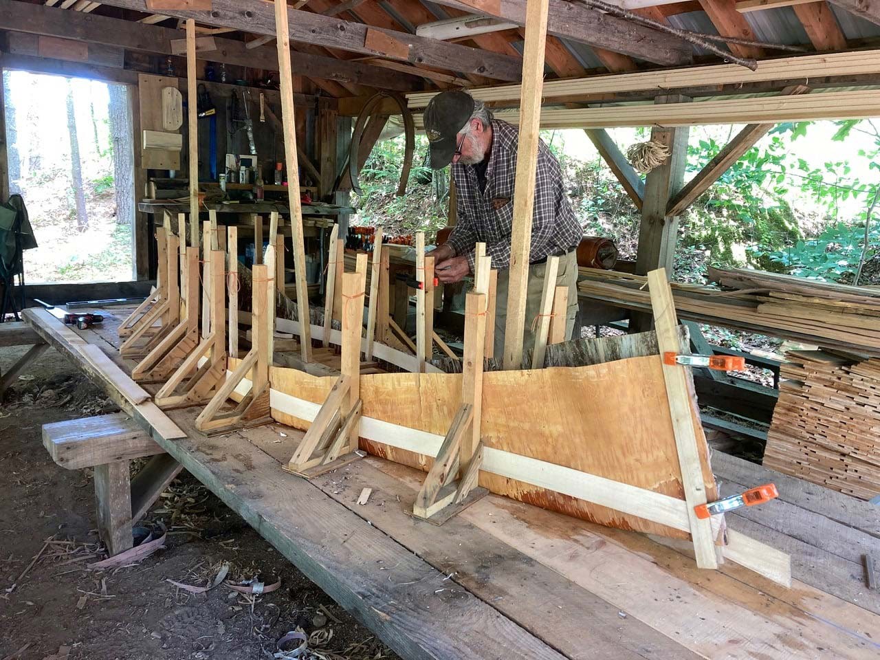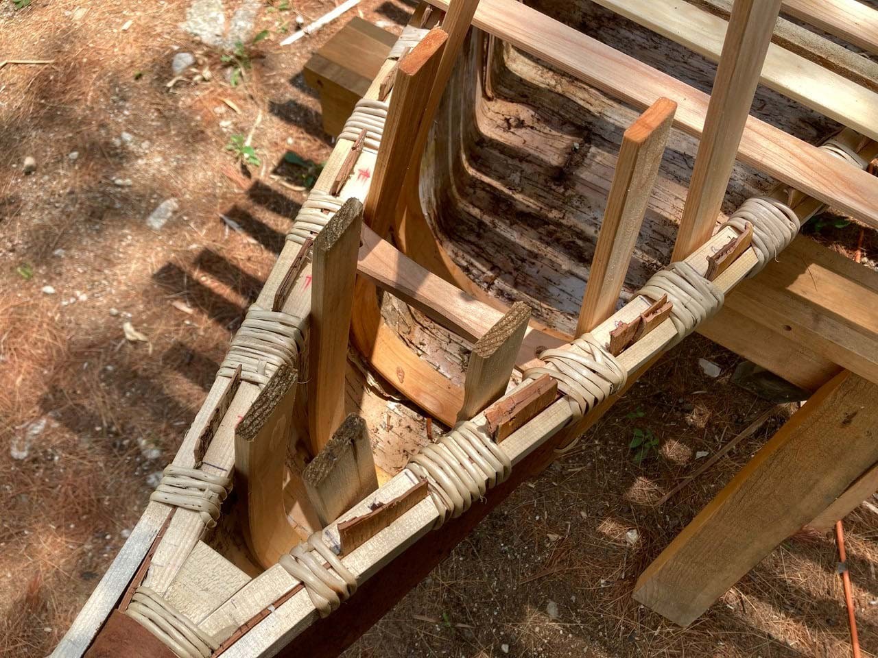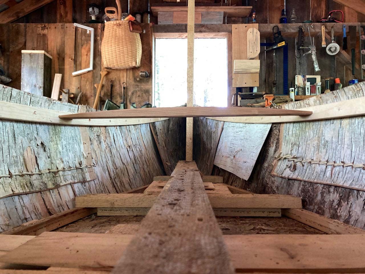 Bill Gould, a member of the Nulhegan Band of the Coosuk Abenaki Nation, and Reid Schwarz, a woodworker and toolmaker, launched their first birchbark canoe onto local waters in New Hampshire in the spring of 2021. Over this past summer, the pair built a second birchbark canoe. Twelve feet long and weighing 42 pounds, the canoe took the pair just over 130 hours to craft, from selecting and harvesting the bark, to shaping the ribs and gunwales, to gathering spruce root to lash pieces together. These images offer glimpses into the progression of their work. Bill and Reid have started a third canoe build and are posting their progress on Facebook.