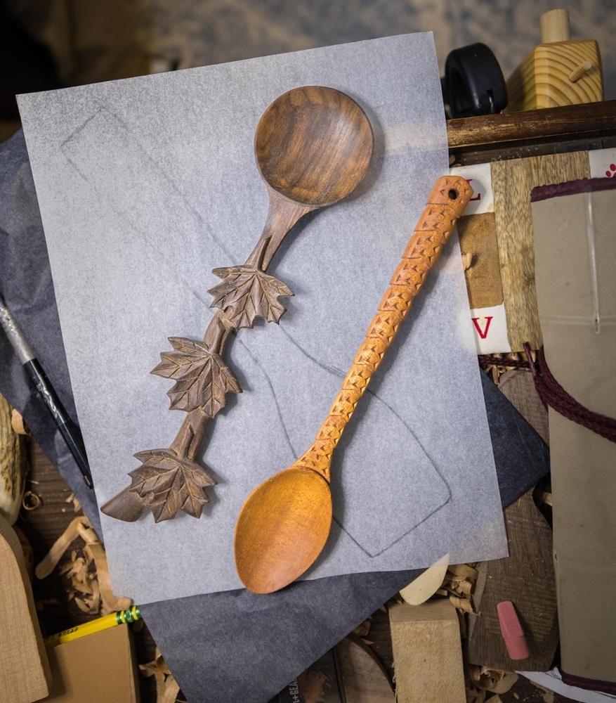 For the Winter 2024 issue of Northern Woodlands, outgoing Executive Director Elise Tillinghast and her husband, photographer Tig Tillinghast, put together a brief feature article focused on the work of spoon carver Anton Prikazchikov, a frequent wood carving instructor at AVA Gallery and Art Center in Lebanon, New Hampshire, and the food service director for New Hampshire’s Mascoma Valley Regional High School. The article includes Prikazchikov’s instructions for how to make a stop-cut handled spoon – a common project in his introductory classes.