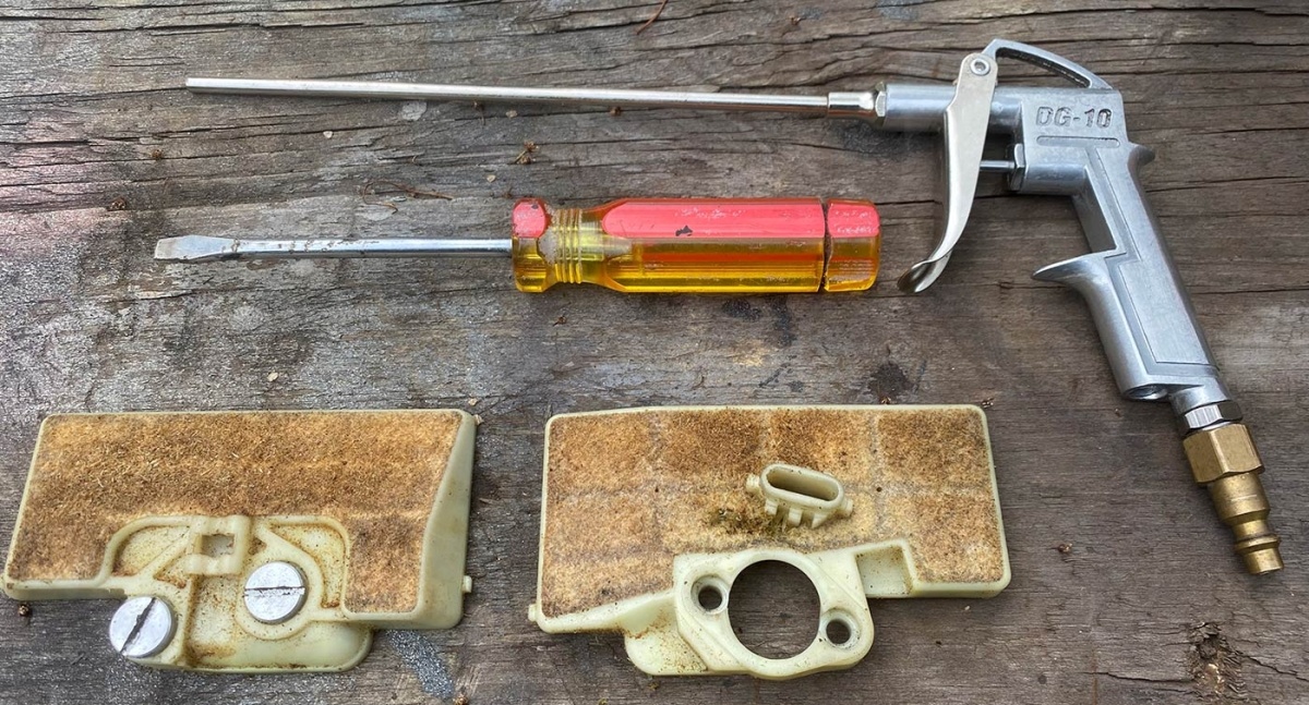 Your beloved chainsaw engine is essentially a fiery air pump. The process starts by drawing in fresh air, compressing that air, and then adding a dose of fuel and a spark – resulting in combustion. If you have a rough-running or underpowered saw, before investigating more complicated causes, consider whether a dirty air filter is restricting airflow.