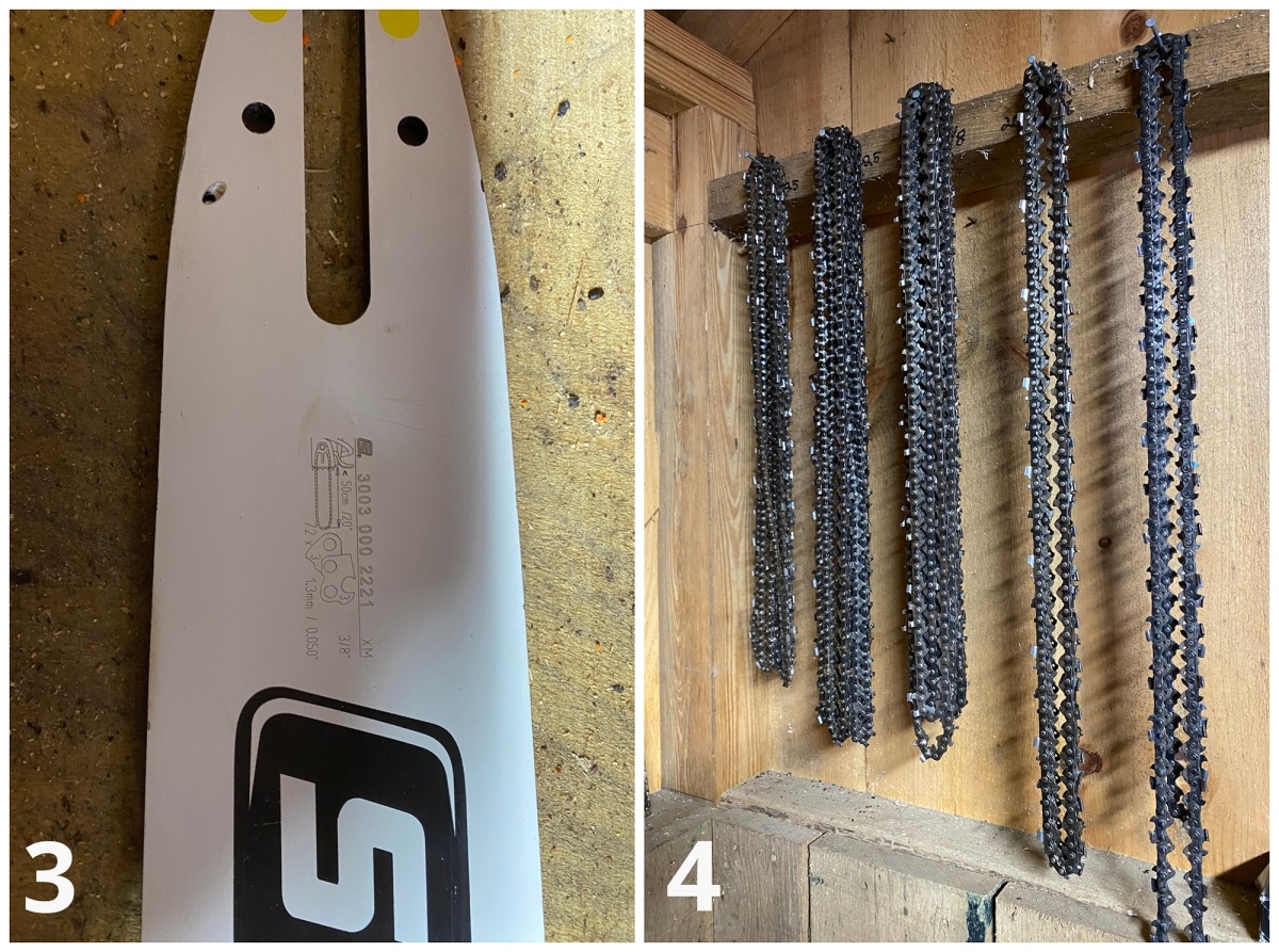 Saw Chain: The chain must match both the sprocket pitch and the bar pitch and gauge. If you’re consistently cutting the same size wood, you may opt to outfit all your saws with the same size bar and chain to further standardize your setup. (Photo 4)