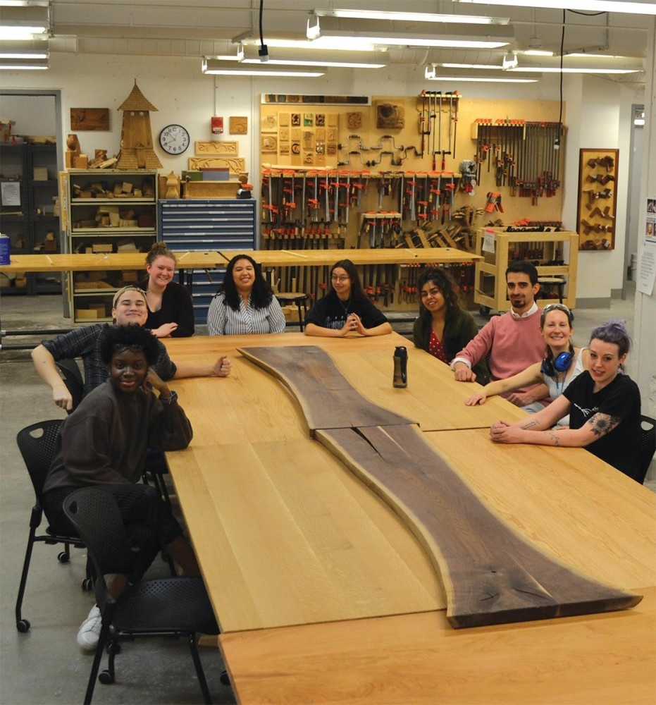 This past autumn, Ryerson’s class focused on a semester-long group project: the design and construction of a conference table for the New England Forestry Foundation (NEFF). In the end, the students opted for a modular design comprised of eight different tables, and five – all regionally sourced – native species of wood. This photo series chronicles the project.