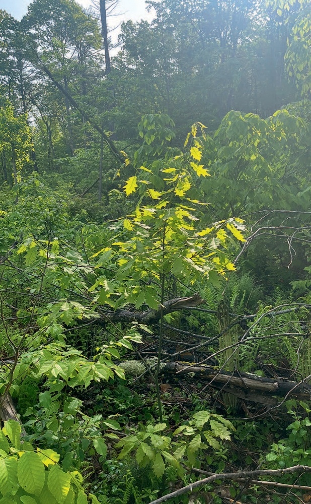 2. Create lots of regeneration at once. Natural tree mortality – and the ensuing regeneration – often comes in dribs and drabs: one or two trees die, creating a small pocket of regeneration, which makes it easy for deer to browse all the young trees of species they favor. This is why, for example, a forest with lots of oak trees in the overstory may have few oak seedlings in the understory. One benefit of working with a forester and a logger to actively manage your forest is that you can create lots of regeneration at once, thus overwhelming the local deer herd’s ability to browse it all.