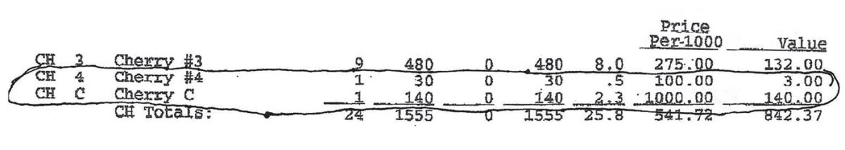 The accompanying chart, pulled from a scale ticket, shows the big swing in value between the classes of logs – it’s the high-grading story told in dollar figures. The choice log netted $140, and there were likely three logs in that tree. The #4 log, same species but from an ugly tree, netted $3. Foresters are always railing against high-grading because if you take all the trees growing choice lumber and leave a forest full of #4s, there’s no economic future in the stand.