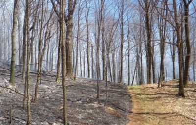 The first match was lit around 9 a.m., and the crew worked until one o’clock the next morning on account of an unexpected wind that kept the fire going. That next day, anyone walking the woods road that traces the west line of the burn unit would have been astounded at the sight: everything to the east was black and harsh; everything to the west was brown and soft. The fire followed the road so perfectly it was as if an artist had painted on the char. I asked one of the foresters affiliated with the burn when they might see results, and he said in May or June of this year. Five to seven years from now the verdict will really be in.
