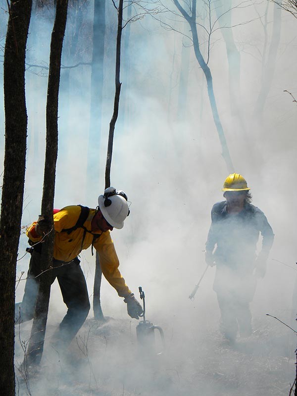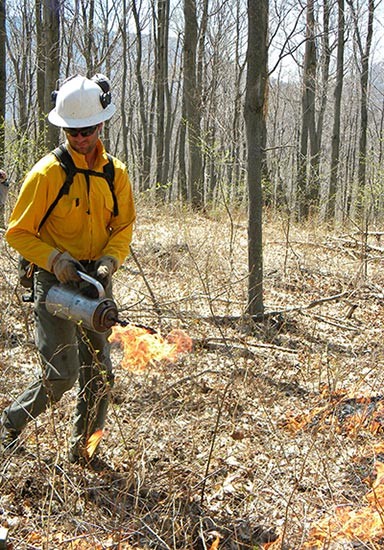 Today, Fire Management Services works with landowners to conduct prescribed burns around the Northeast. This could mean a shrubland habitat burn in Connecticut designed to help New England cottontails, a regeneration burn in a commercial lowbush blueberry patch in Maine, or a forest burn in southern Vermont to discourage beech. Fire can also be used to promote certain tree and plant species and to help control some invasives.