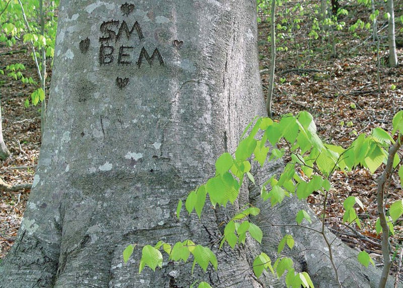 Despite its multiple chemical and structural defenses, bark can’t protect trees from all attackers, especially introduced organisms for which a species has no evolved resistance. Beech bark disease illustrates the domino effect that can be initiated by a simple wound. The thin bark of American beech provides many advantages, but this species has no defense against the beech scale, a tiny insect smaller than the head of a pin, accidentally introduced from Europe in the 1800s. When these insects penetrate the bark to feed on sap, they chemically alter the bark in a way that allows a fungus to invade at a later time. A tree’s efforts to compartmentalize these infections typically fail. The resulting perennial cankers, which render the trunk and branches almost unrecognizable as beech, facilitate secondary infections and insect infestations that most often lead to the death of the tree.