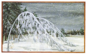 Last winter, heavy snow brought the tops of a clump of four gray birches outside our kitchen window all the way down. More snow fell, and then it warmed up enough to melt the surface, which soon froze to a crisp. The birch tops were locked in for weeks, and I was half inclined to put them out of their misery. That would have been a mistake. Upon thawing, they rose carefully, just a little each day, like prudent invalids regaining their feet. Recovery was complete, and no symptoms were to be seen by the time they leafed out in May.