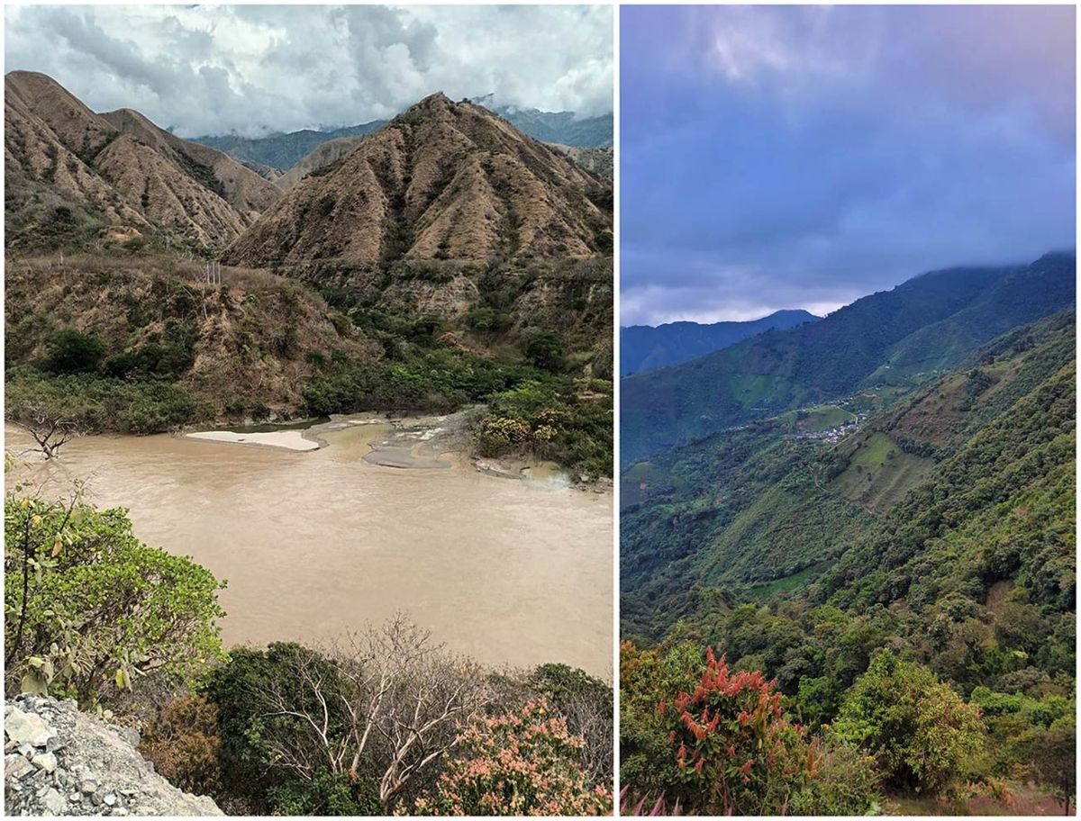 As Thelen noted, transmitter data revealed that “Harris,” the first broad-winged hawk to be tagged in New Hampshire and one of only a few males in the Hawk Mountain study, spent two winters in the same rural area of north-central Colombia. In January 2023, collaborators in Colombia traveled to Harris’s overwintering habitat in the tropical dry forest of the Cauca River Canyon (left photo) and lower montane humid forest (right photo), where they collected additional geospatial data.