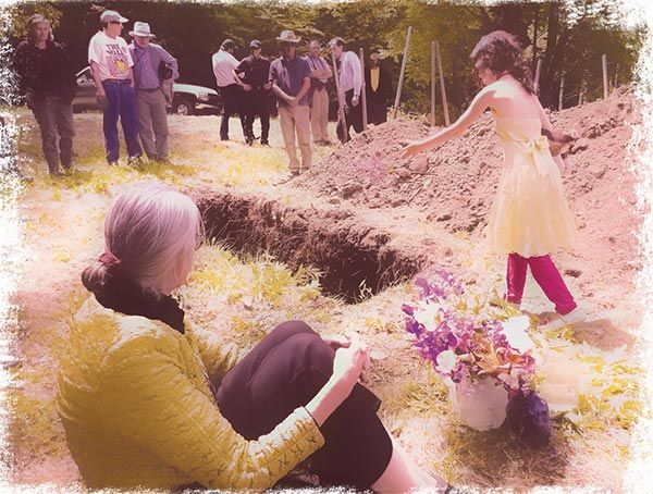 Most states in the Northeast allow home burial, though specific requirements must be met. “Family cemeteries are an American tradition, and many Vermonters are proud to own such land,” according to the Vermont Department of Health website, which includes a brochure entitled Digging Deep, Unearthing the Mysteries of Burial and Cemetery Law. This cheerful guide, compiled by the Secretary of State’s office, lists all the necessary steps, which include drawing a map of the burial site and recording it in the town records, submitting a death certificate to the town clerk and receiving a burial transit permit, and meeting appropriate setbacks.