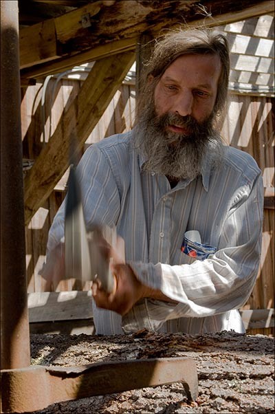 When Amos passed away, the situation changed. The Sawyer and the other workers were wary of my camera. (Which makes the pictures in this collection of Mike “Moose” Evankow setting the “dog,” carrying slabs, all the more valuable.)