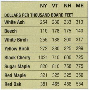 Because these are prices paid for delivered wood, landowners need to adjust the prices down to get an idea of what they might receive from the logger for their trees. Please read the section below for a discussion of the factors that affect the price paid to landowners.