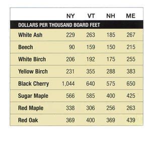 These data are compiled from interviews with suppliers and buyers, and from the most recent print and on-line versions of the edition of Sawlog Bulletin and used by permission. Please note that many of these prices were reported three months prior to our publication date, and current prices could be higher or lower.