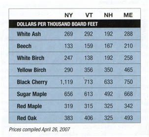 These data are compiled from interviews with suppliers and buyers, and from the most recent print and on-line versions of the edition of Sawlog Bulletin and used by permission. Please note that many of these prices were reported three months prior to our publication date, and current prices could be higher or lower.