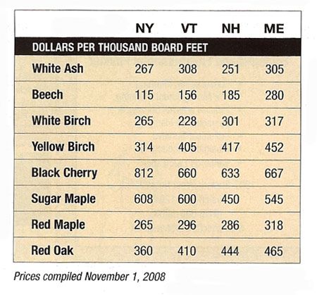 These data are compiled from interviews with suppliers and buyers, and from the most recent print and on-line versions of the edition of Sawlog Bulletin and used by permission. Please note that many of these prices were reported three months prior to our publication date, and current prices could be higher or lower.