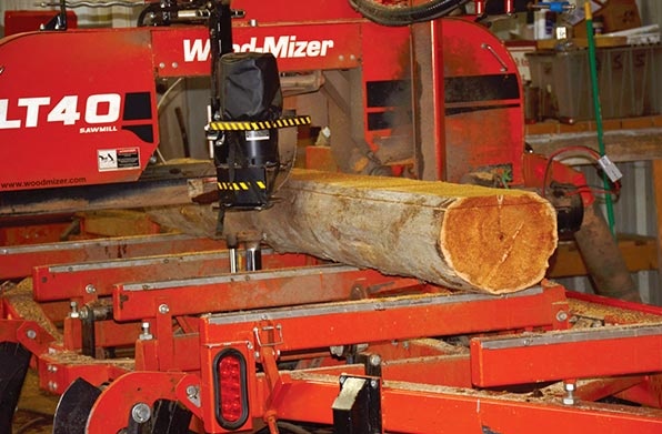 Once there, the logs are loaded onto a shaker screen to scrub off the worst of the mud and rocks and put through a debarker. “It’s a process that’s extremely labor intensive. It takes five men to run that,” said Shafer. Logs smaller than five inches are set aside for chipping. The good stuff is sawn 1.375 inches thick. It then goes to Pride Manufacturing in Burnham, Maine, for drying.