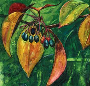 In May, the creamy white flowers are abundant. Though each one is tiny, they are borne in showy clusters, three or four inches across, and are pollinated by insects. The fruits are green at first, then yellow, red, and, finally, bluish-black. The blue-black contrasts nicely with bright red fruit stalks. The fruits, too, are said to be ill-smelling, but I have not noticed this. Native Americans ate them fresh and dried and they are recommended for jams and jellies. I’ve given them a try and found them to be tasteless. A person would have to be pretty hungry to eat more than a few. Chipmunks, red squirrels, and many birds eat nannyberry fruits, along with those of the other viburnums, but because they all are relatively low in fat, they are not a real fall favorite.