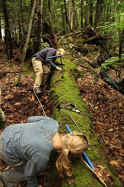 With a solid grasp on the structural patterns in this natural landscape, the Harvard group sought a temporal framework for interpreting the relationships among all of these features. Exactly how ancient were these trees, and what initiated their establishment? How frequently did these different disturbances occur, and what was their role in determining the age, type, and placement of individual trees? How much did the various disturbances vary across the landscape? And do forests develop slowly and progressively, or episodically and in fits and spurts? Though the academics could hazard guesses based on information like the sizes of trees or their degree of decay when fallen, they were rightfully insecure about these speculations. What they needed was to really dive into and disassemble the forest.