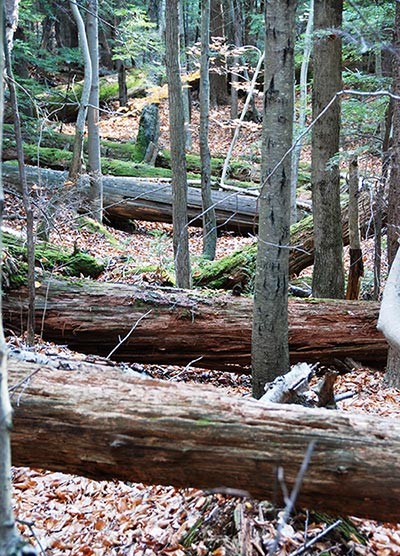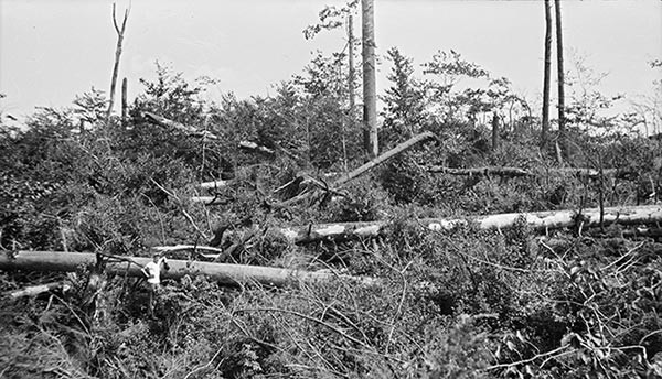 “Even in their prostrate position, these veteran trees are an impressive sight,” Cline wrote. “In the small openings among the fallen trunks and branches, the new generation is already becoming established. In accordance with the purpose of acquisition of the Harvard tract, no salvage of the down timber was permitted. It remains a place where one may study nature undisturbed by man.”