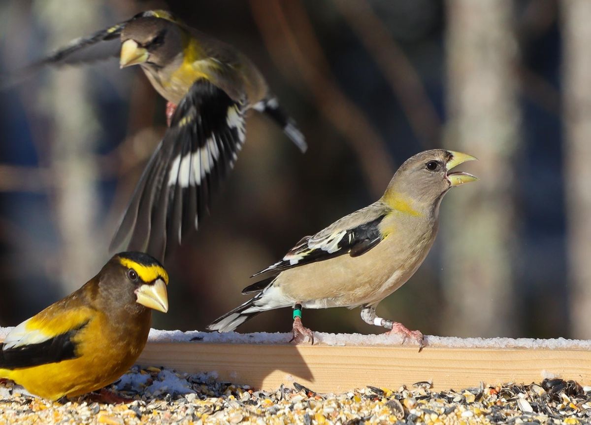 David Yeany’s obsession with evening grosbeaks began in his childhood backyard. In 2007, while on a winter break from his graduate studies in ecology, he visited his parents at the family home just outside Allegheny National Forest in northwestern Pennsylvania. One day, he heard an evening grosbeak flight call. “I had never registered that species there,” said Yeany. With help from his father, he built a platform feeder, an attractive design for finches. By 9 o’clock the following morning, there were nine evening grosbeaks at the feeder, chomping on seeds. Nearly two decades later, the Yeany family’s backyard still hosts evening grosbeaks each year.