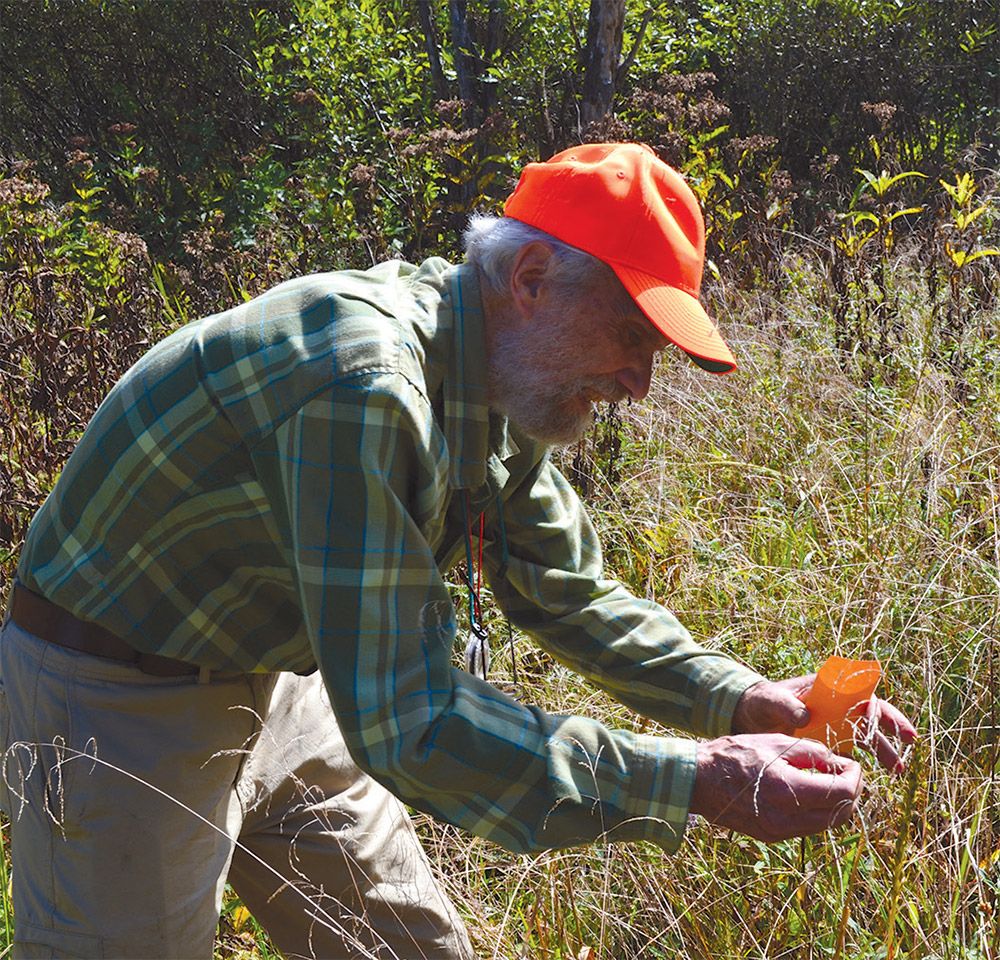 After climbing a steep, winding road through a gap in Vermont’s Green Mountains, my car descended into Addison County, rolling past fields bright with purple aster and goldenrod. A black Subaru wagon was parked at a pre-arranged meeting spot at a junction of dirt roads. Out stepped Warren King, a spry, gray-bearded, retired ornithologist, environmental educator, and long-time conservationist who now spends significant time volunteering for the New England Wild Flower Society. This particular day, King was working on the Common Orchid Project, a collaboration between the New England Wild Flower Society and the North American Orchid Conservation Center, a program of the Smithsonian Environmental Research Center. He led me through a maze of dirt roads and we parked, pulled on tall rubber boots, and shouldered our day packs. Crossing the road, we bushwhacked through dense woods, part of the Green Mountain National Forest.