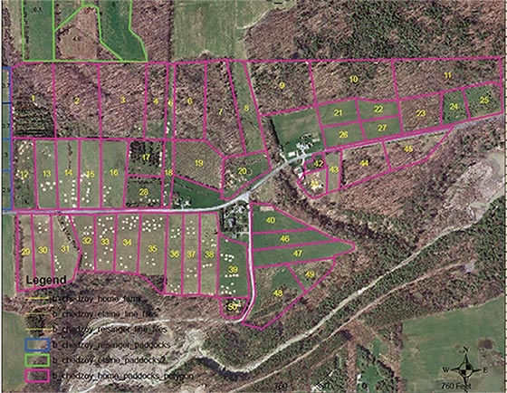 On Chedzoy’s New York farm, for example, he’s grazing cattle on over 400 acres (including six conifer plantations) of well-drained soils. “The grazing areas are six to seven acres in size and we manage our livestock to promote the best trees. We typically move our cattle daily, so the rest and recovery period of each paddock may exceed 100 days. I say ‘may’ because nothing is written in stone with adaptive grazing, and sometimes plans change,” he explains.