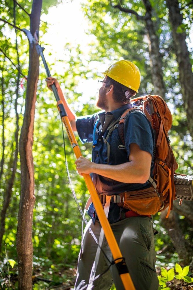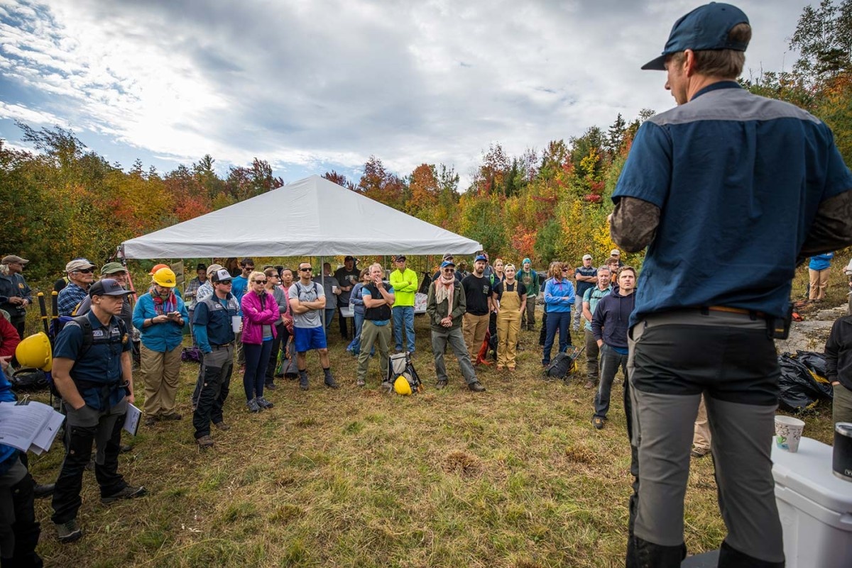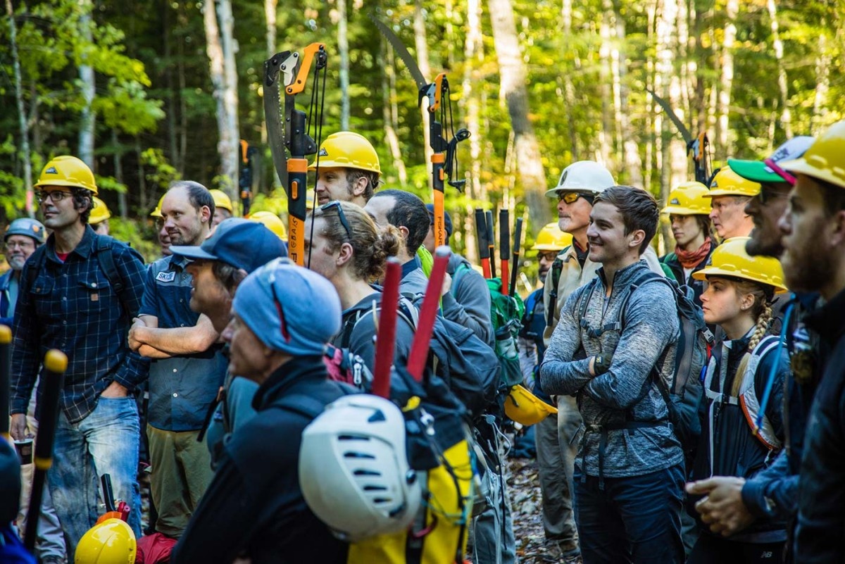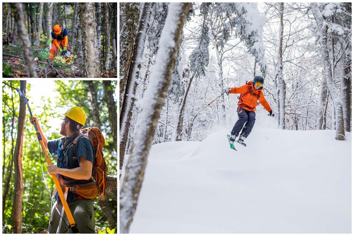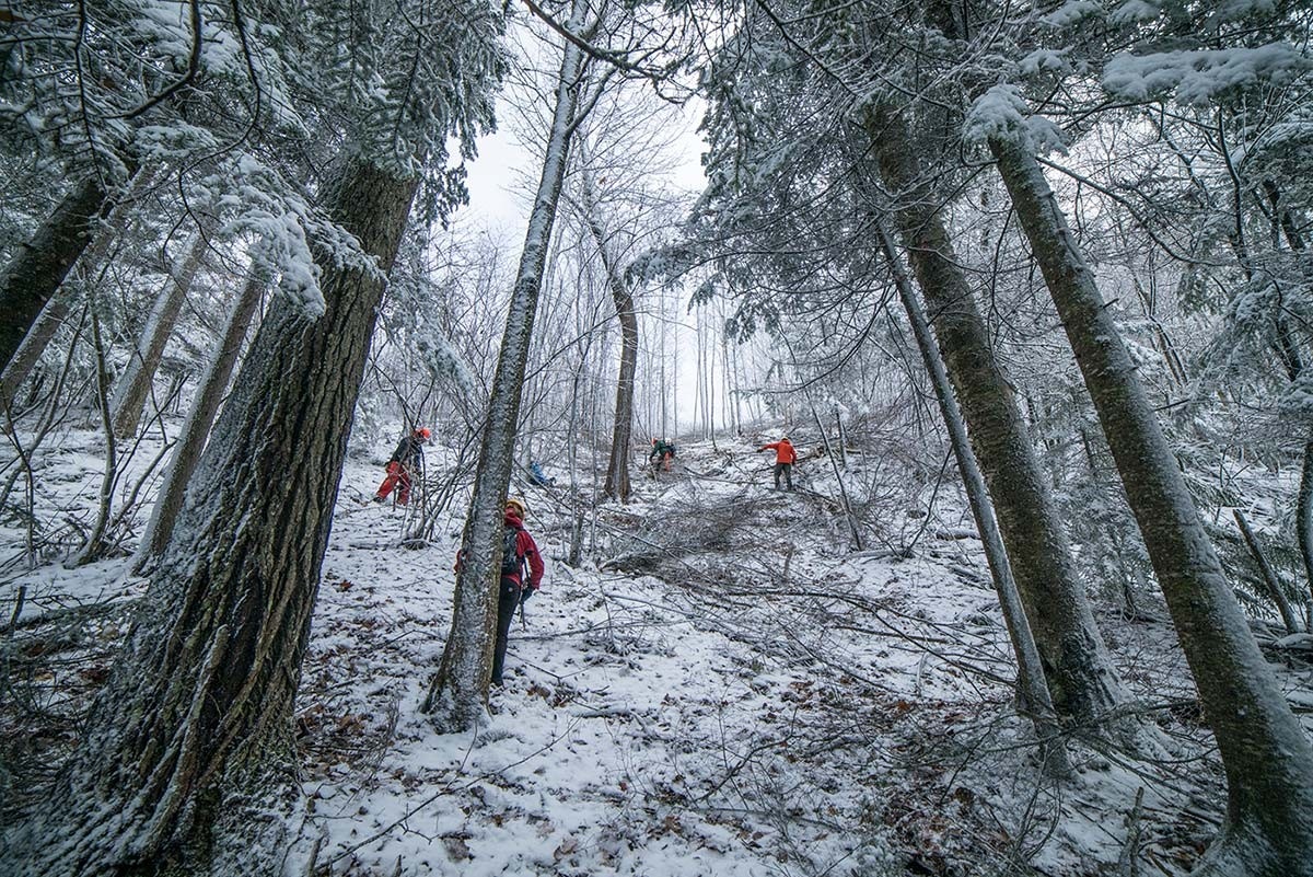In 2016, a group of skiing enthusiasts in the White Mountains established the Granite Backcountry Alliance (GBA), with a mission to develop ski glades in collaboration with private landowners, conservation organizations, and government agencies – from local select boards to the U.S. Forest Service. In the years since, GBA has developed 10 glade zones in New Hampshire and western Maine, adopting a GIMBY (Glade In My BackYard) mentality. These ski lines through the forest are professionally designed and built largely by volunteers – dubbed Quarry Dogs by GBA – who flock to glade days by the scores to help create the places where they can earn their turns come winter.