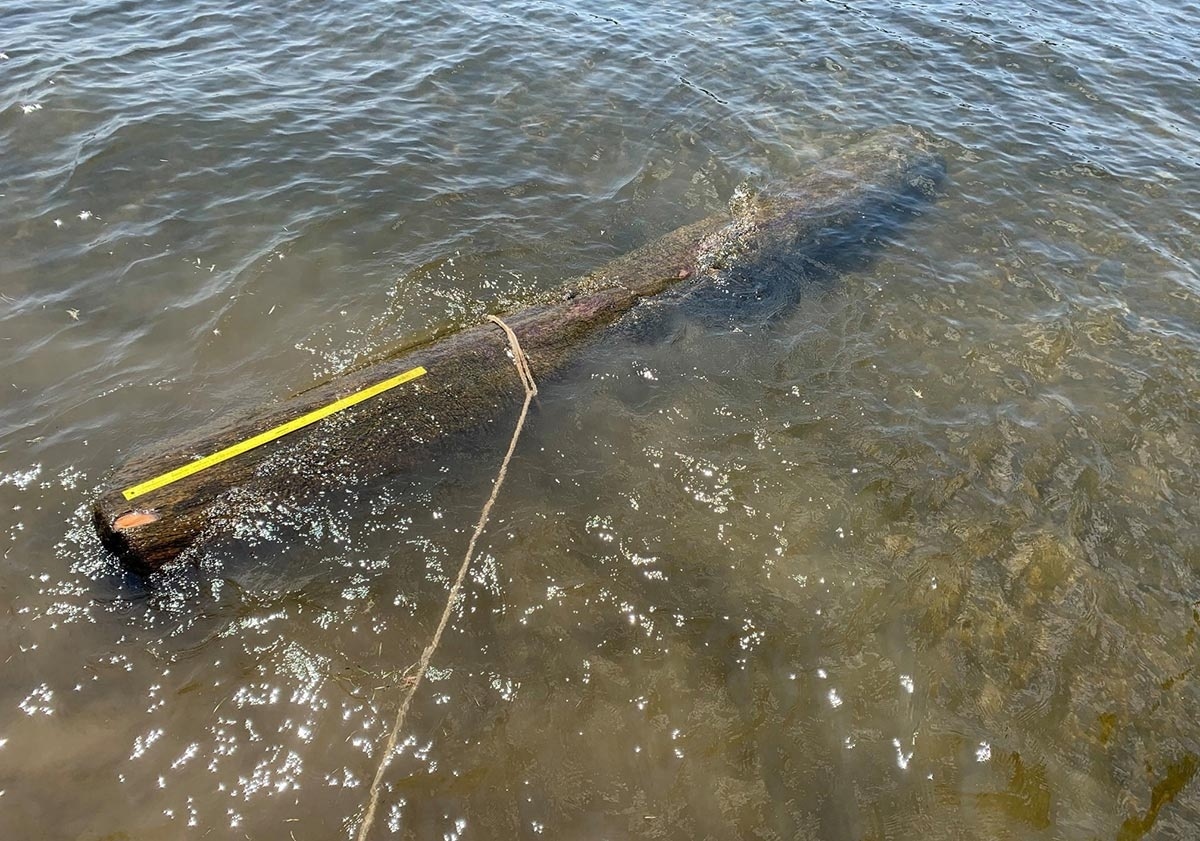 Bright’s salvaging process required a snorkel, a 14-foot aluminum fishing boat, and a long length of braided rope. He would snorkel along the shore, searching for long, silt-covered mounds (the standard length for logs harvested in the 1800s was 13 feet by 4 inches). When he found a log, he would excavate one end and secure a rope around it. Then, standing on the prow of the boat, he and Kate worked together to hoist the log out of the silt. They would tow it to their house on the edge of the lake and roll it onto the shore.
