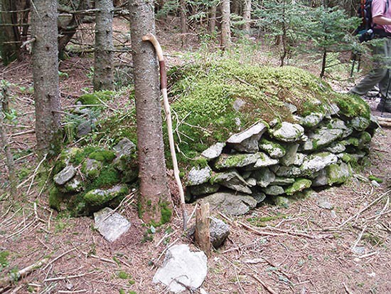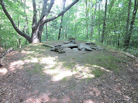 Not far from the summit of Glastenbury Mountain in Southwestern Vermont, the Long Trail passes by an old fire tower. A series of low stone mounds lie nearby. Five in number, they stand two to four feet high and nearly eight feet in diameter. It is not unusual to see piles of stone in New England. Farmers left them wherever they settled to make way for construction or cultivation. But these strange and carefully crafted cairns stand on a remote mountain top that’s miles from any colonial cellar hole.