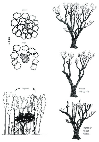 Start with an evaluation of the tree. If the tree has not produced fruit in the past few years, your sweat equity will not change that, so move on to one that is known to produce at least some fruit. If more than half the canopy is made of live wood, then maximize the amount of sunlight available to the tree by removing the competing trees, especially to the south of it. This is called releasing the tree, and a healthy tree will often set more fruit just from a release. Apple trees need full sun to make plenty of fruit, so remove all other trees and shrubs back to the tree’s drip line.