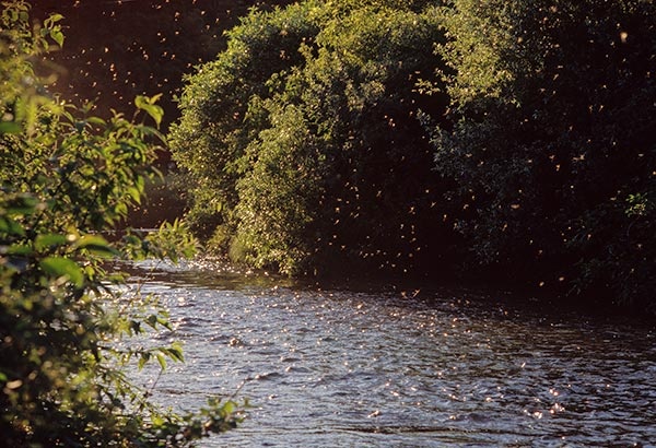 If you are a fly-fisher, there are few greater pleasures than connecting to a fish with your hand-tied counterfeit fly, but you need not take up the sport to experience the thrill of the hatch. I have witnessed clouds of Brachycentrus caddisflies backlit by the setting sun over New Hampshire’s Pemigewasset River, and sat in stunned silence on the shores of Vermont’s Black River to stare at wave after wave of dark blue sedges rushing upstream. Under a hailstorm of coffin flies descending from the towering trees above Tamarack Stream, I’ve caught the insects with a net instead of the rising fish with my fly rod. I’ve watched in wonder when a swarm of golden stoneflies darkened the evening skies over the upper Connecticut, and I’ve driven through a downpour of dying Hexagenia mayflies along the shores of Cape Breton’s Lake Ainslee. At times like these I am reminded that the prospect of catching a fish is often what draws me to the water, but it is rarely the only reason that I am there.