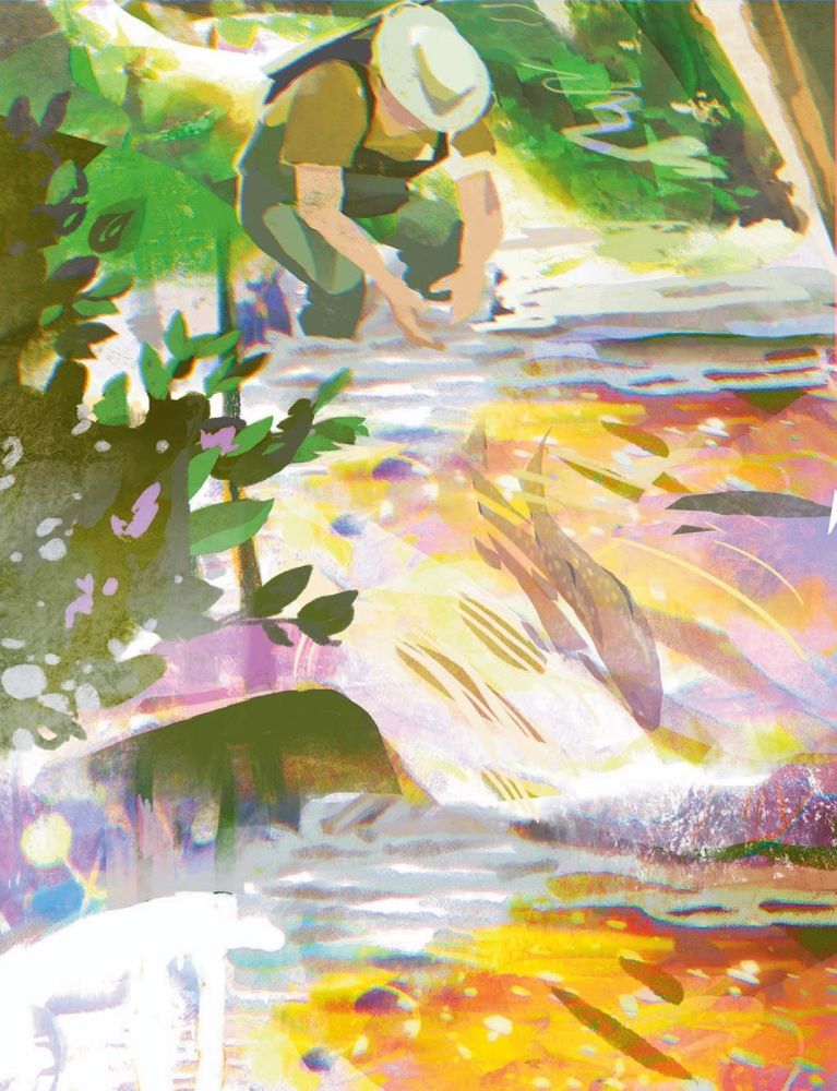 I shout to Noah that I think the trout’s wrapped me around a sunken log. A ponderous anxiety fixes to the ribcage, a feeling anglers know too well when they’re sure a special fish has eluded them, breaking the line, tangling them, and spitting a fly. I move forward into the pool, water rising around me. I bring the rod tip toward me and grasp the line to tug a bit harder, hoping to release the snag without breaking off the fly.
