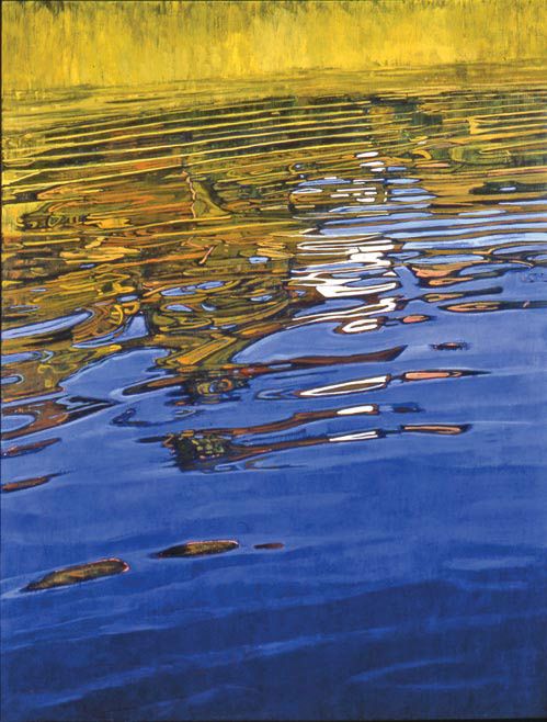 I like to think of Sarah Knock as a topographer. She records the surface features of water as light purls across it, showing us with amazing verisimilitude the fusion of light and liquid. Knock explains that for her, “water is a vehicle to explore the abstract qualities of patterns and reflections.” How difficult to convey the nature of something so transitory, so ephemeral, so full of pure energy.