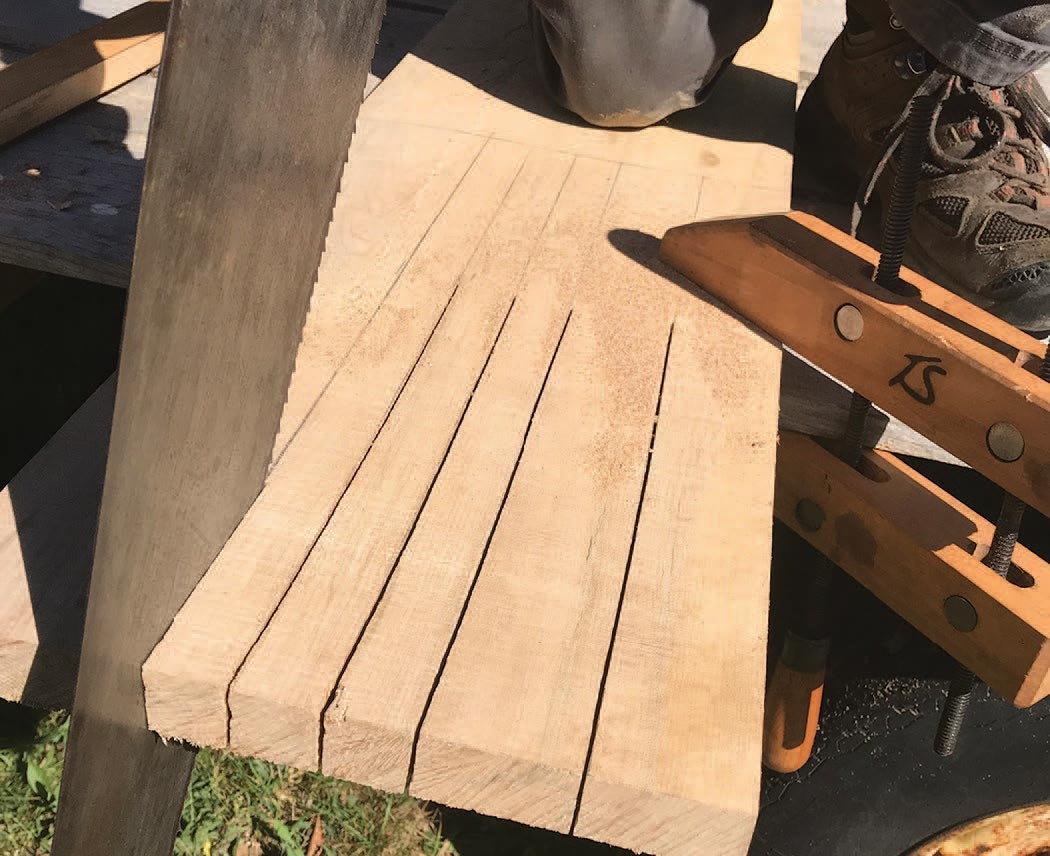 For this project, I went with a simple design that appears to have its roots in rural France. It was made entirely from a 5/4-inch-by-10-inch-by-8-foot slab of hard maple, with black cherry saplings for legs. A shavehorse must fit the user, so I’ll refrain from prescriptive dimensions and instead focus on the design concept.