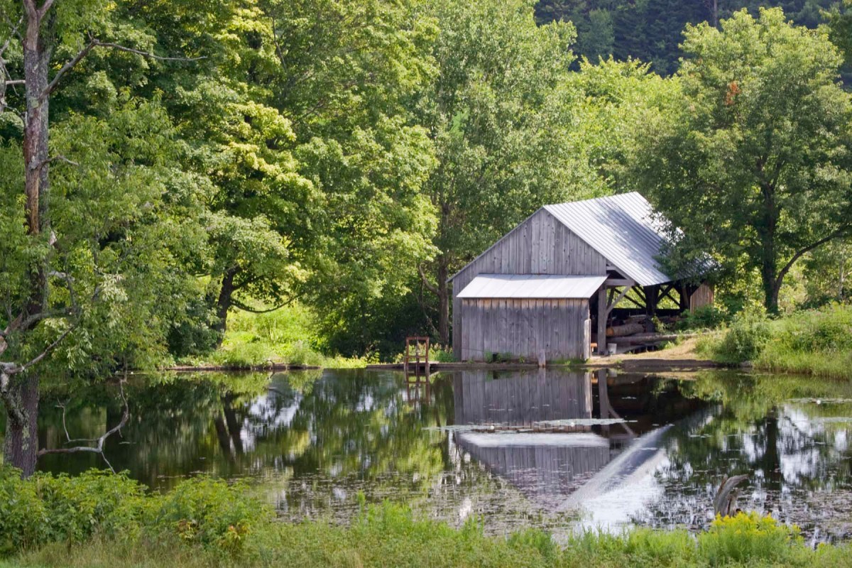 Water power. Our ancestors, those stalwart souls who headed off into the wilderness to build new settlements, depended on it. They dammed streams and rivers to power the mills that were essential to those early, self-sufficient communities. The flowing water sawed their lumber and ground their grain, and, once the land had been cleared for farming, even kept their milk and cheese cool in hot weather. Mill ponds provided fishing in summer and ice skating in winter.