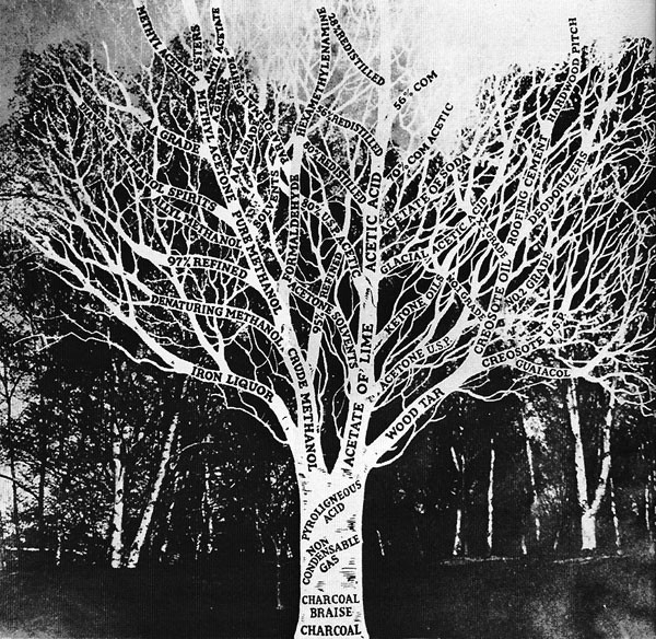 Eventually, the chemical byproducts created in the charcoal-making process became more valuable than the charcoal itself. The industry came to be known as the “acid-wood” industry.