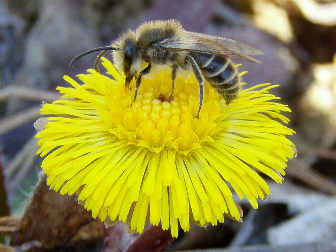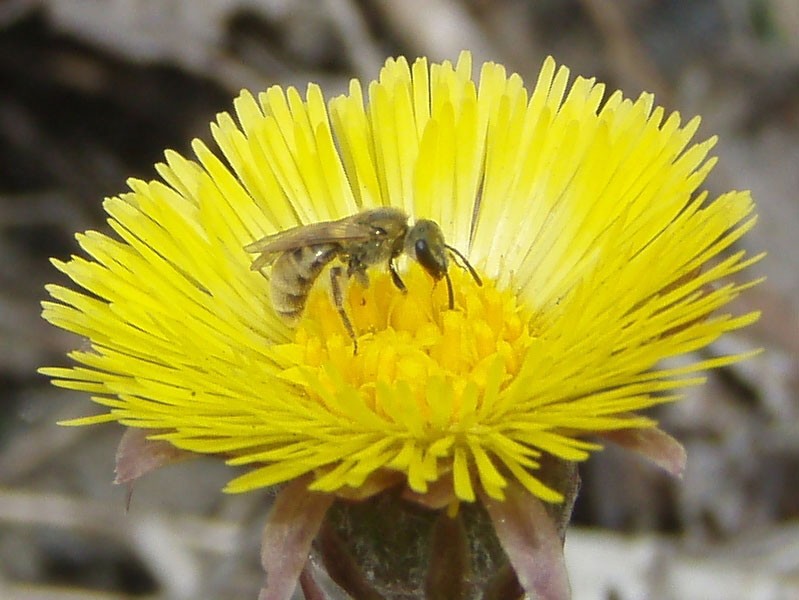 Landowners should also consider the nesting needs of the bees at work on their lands. Leave parts of hayfields undisturbed, if it’s possible to forgo a portion of the crop. The sparsely vegetated and uncompacted soils of hedgerows, dry banks, and forest roads are often inhabited by nesting bees. Tilling can destroy bee nests, so in row-crop situations, leaving some areas fallow or in cover crop can help. One of the greatest threats to bees is the widespread use of pesticides. Of particular concern are the neonicotinoid class of pesticides, those applied to flowering plants, and those applied as dusts or small pellets, since bees mistake it for pollen and take it back home to feed their larvae.