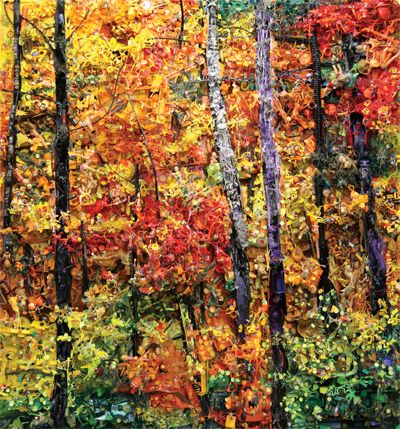 Deininger’s work is serious and addresses some important environmental issues, but it is also masterful and endlessly intriguing to study. There is a message here, but the piece is not solely intended to instruct or set forth a moral observation. Autumn Foliage is full of wit, skill, and artistic energy. It redefines the term trompe l’oeil as it tricks the eye into believing that a three-dimensional image is two dimensional. Conceptually and physically, Thomas Deininger’s work satisfies on many different levels.
