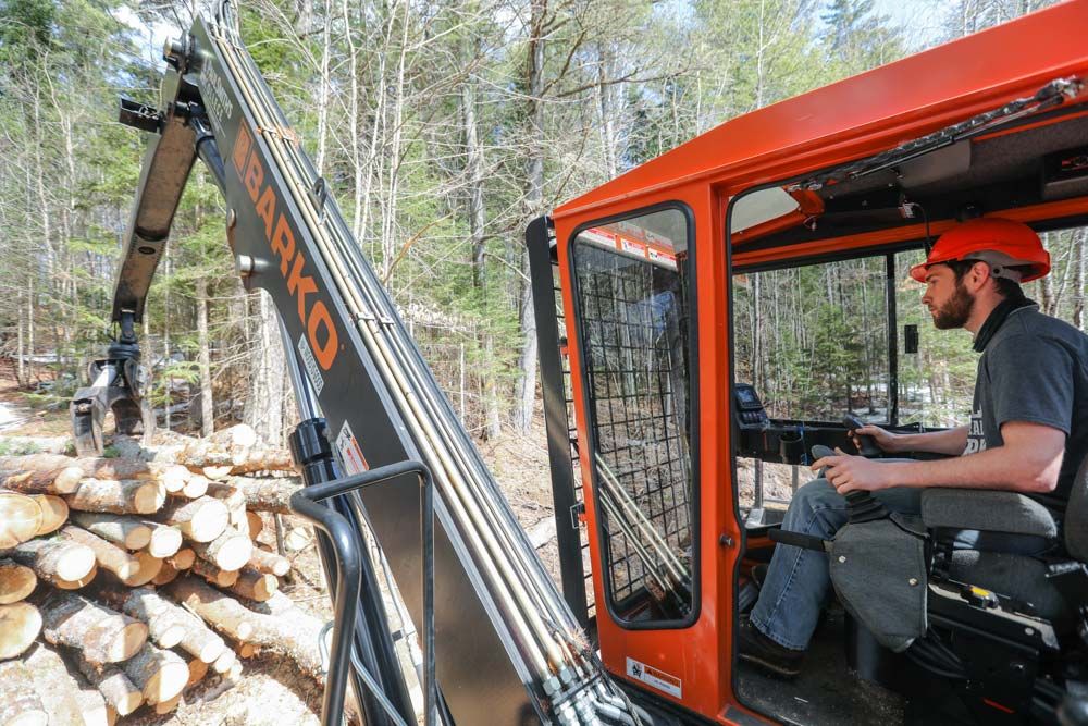 In March 2021, upstate New York-based photographer Erika Bailey joined members of Paul Smith’s College Timber Harvesting Crew for a day to document their harvesting activities in a stand in the northern Adirondacks. Weeks prior, a sophomore silviculture class marked the stand for harvest under the supervision of College Forester John Foppert, putting into practice lessons in ecology, wood properties, economics, and plant physiology. For this site, top forestry operations students are implementing a prescription for a free thinning, intended to improve the health of the remaining trees in the stand and favor the best trees for future growth rather than maximize income from the immediate harvest.