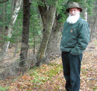 Passing a stone-lined cellar hole on his land, he mentions it was probably abandoned in the 1840s (because 1850s-era maps don’t show the building). He points to a wind-tipped white pine, bent by the hurricane of 1938. The pine came in after the pasture was abandoned, he says, and from the number of whorls on the original leader, he knows it was about 20 years old when it was tipped. That helps him date pasture abandonment of much of his land to 1920 or so. Wessels has been generating and testing similar hypotheses about land use history for about 35 years.